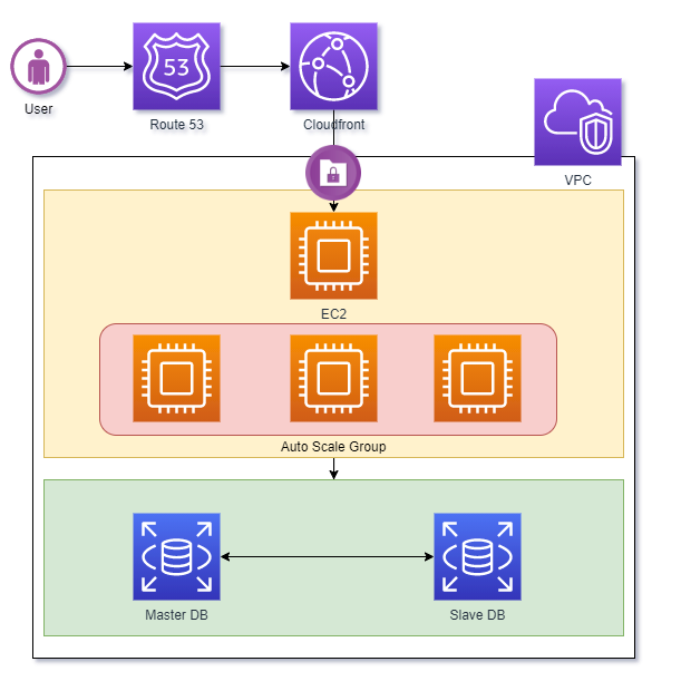 Elastic Load Balancer + EC2(Auto Scale) + RDS(Disaster Recovery) + Route53 + Cloudfront
